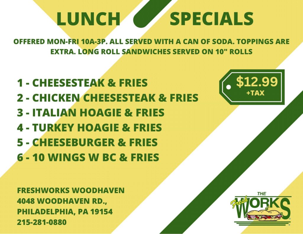 We offer Catering For all Events and Parties! From Cheesesteak, Hoagies and Sandwich Trays to trays of Italian Meatballs, Roast Beef, Roast Pork, Chicken Parm, Baked Ziti, Salads, Apps and More.
